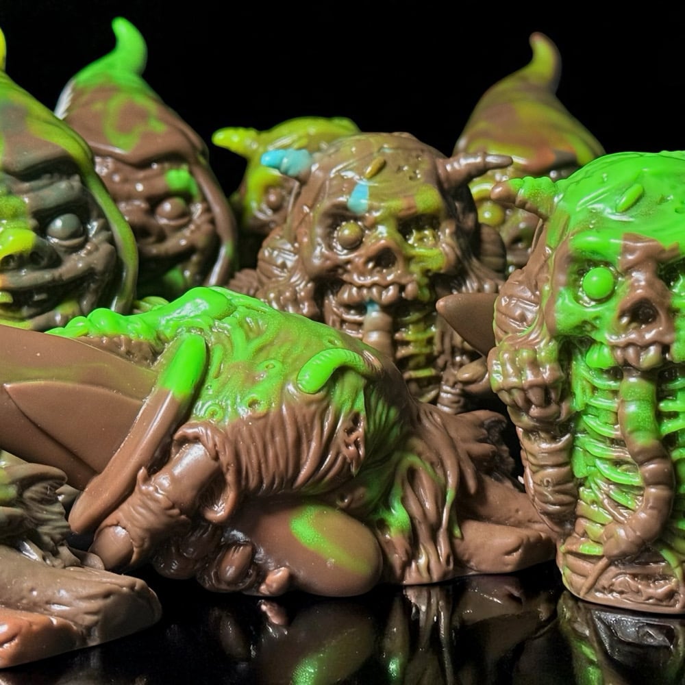Choose your player. Color variation will be selected at random. Brown soft vinyl marbled with bright yellow, various greens, etc. Cast in the USA by Mile High Sofubi.